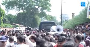 5. वेरोजगारों का एक गुट परीक्षा रद्द न करने के पक्ष में ।